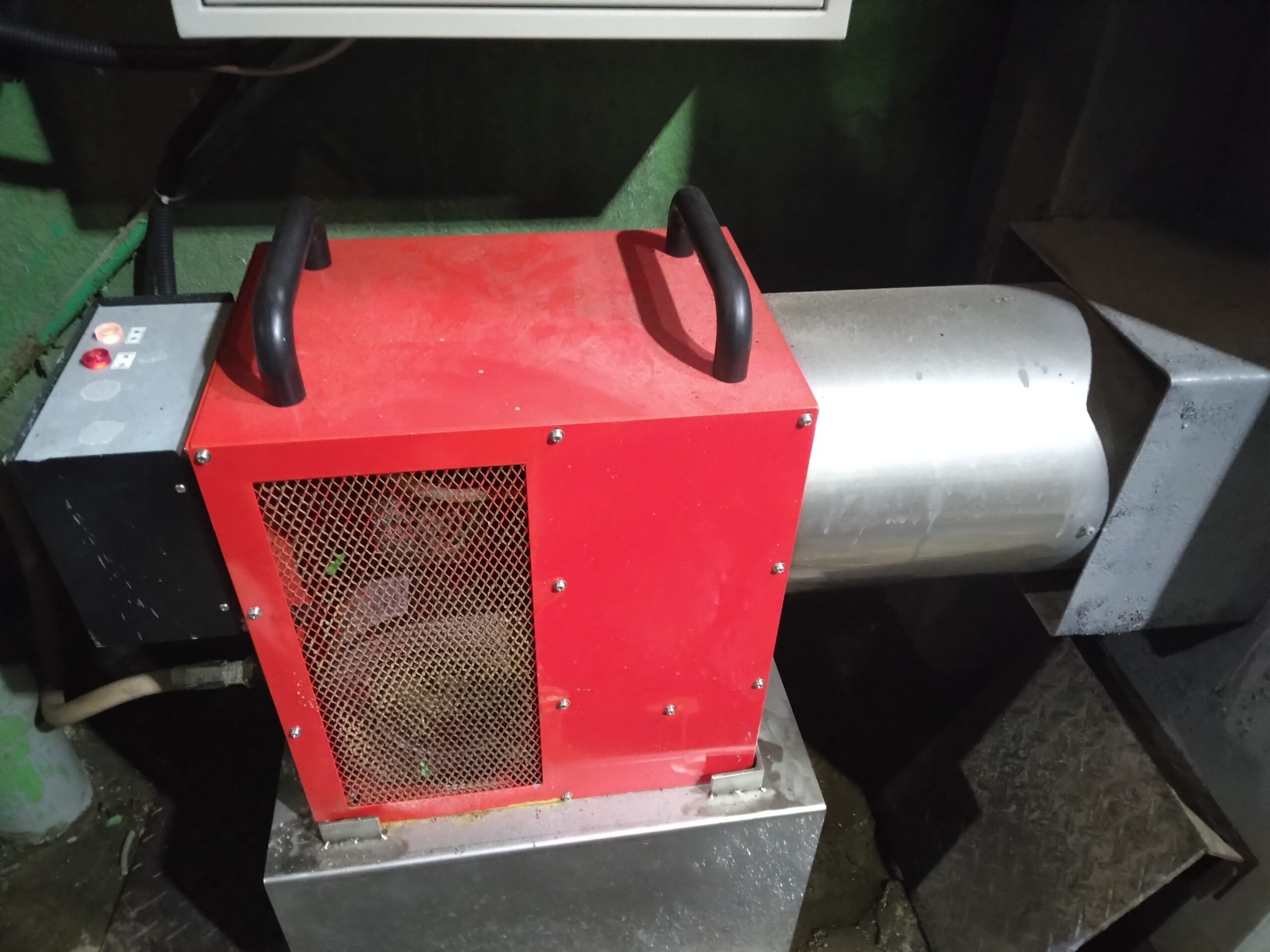 鍍金後の乾燥熱源に灯油のジェットヒーターを使用していたが、灯油を補充する手間がかかり、効率が悪いことが課題となっていた。